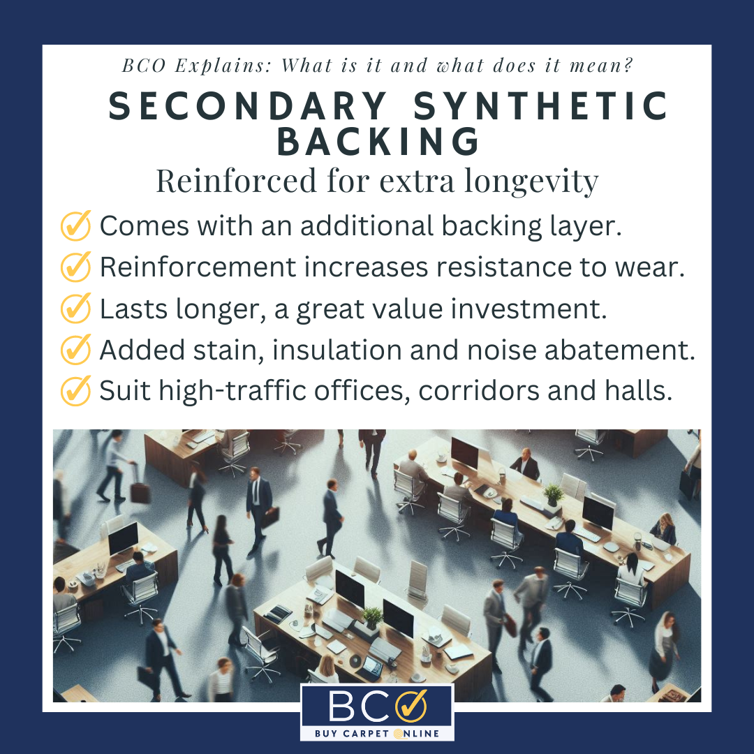 Secondary synthetic backings create a strong, durable carpet. The secondary layer to this helps boost the durability further.